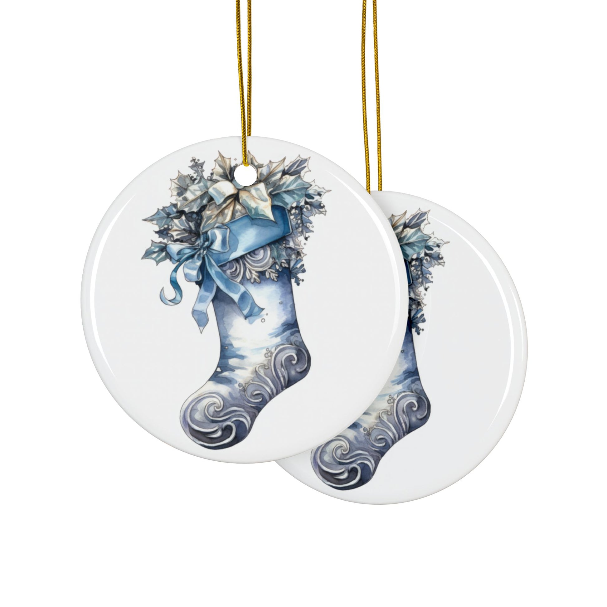 Blue Christmas Stocking Ceramic Ornaments